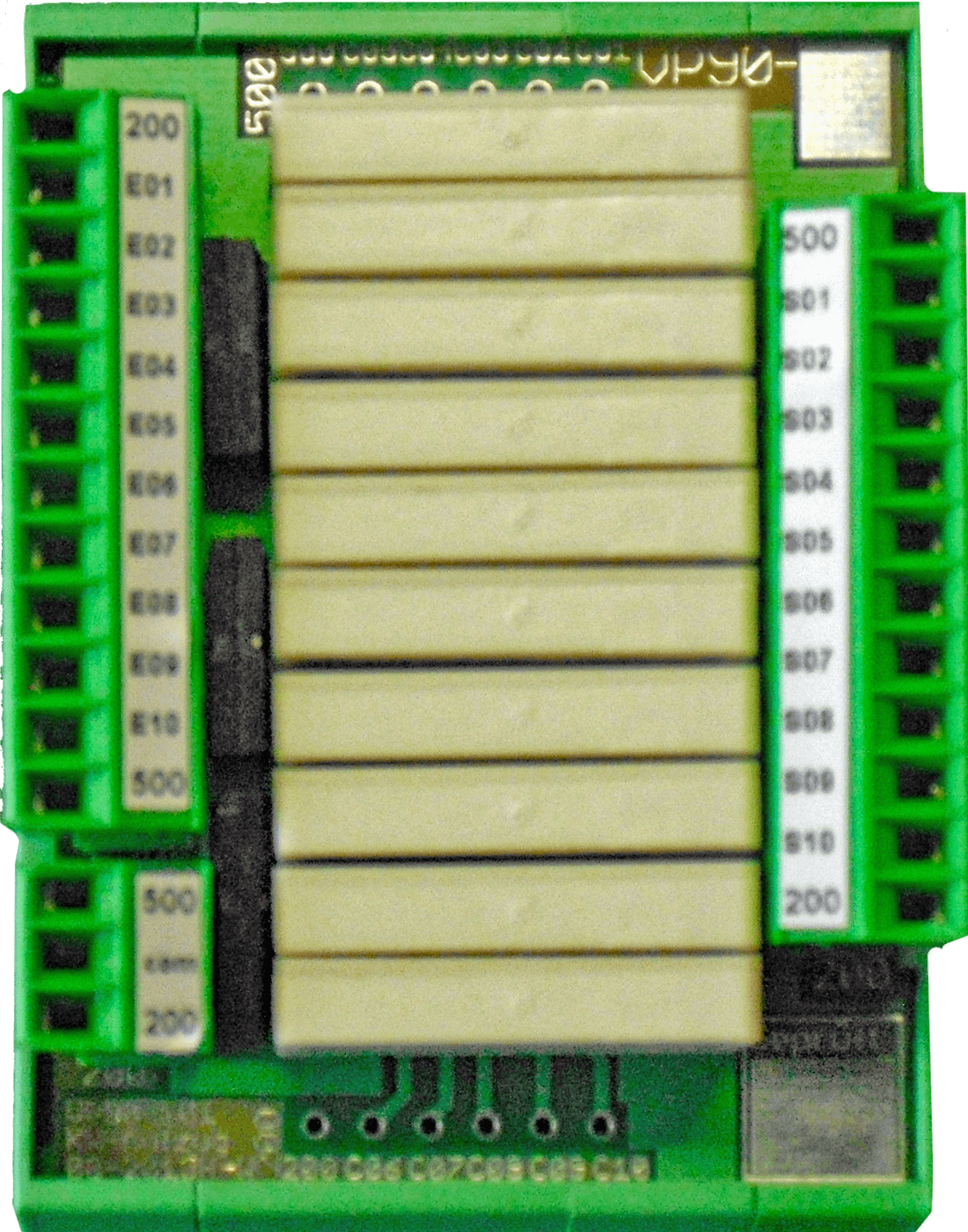 | Verwendung-Funktion: | Die Relaisbaugruppe VP68-101 dient als Ausgangsgruppe mit 10 potential behafteten Relaisausgängen (gemeinsame Anode / Kathode). Schließer und Öffner extern herausgeführt. Die Ansteuerspannung beträgt +24V DC. |